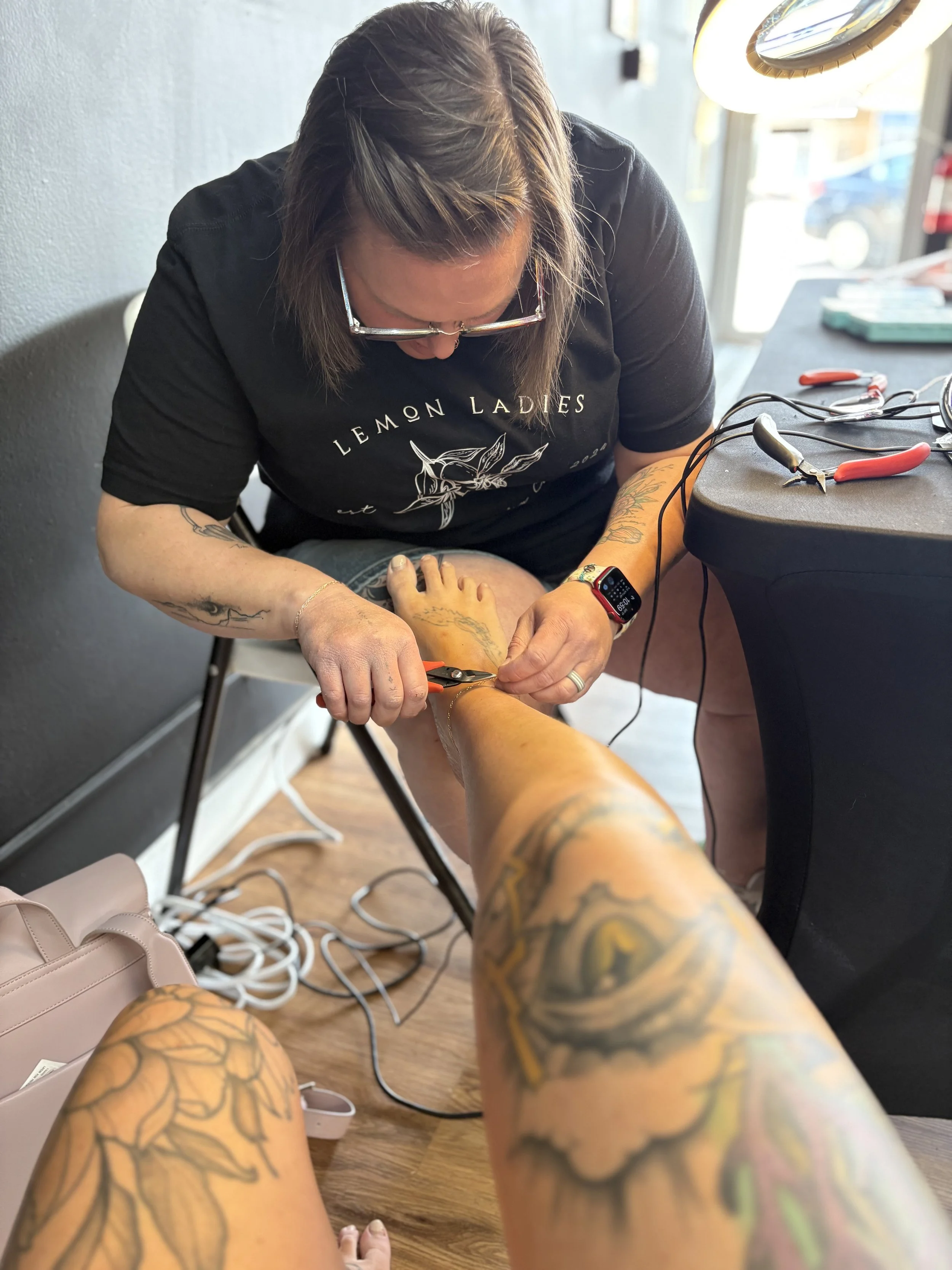Lemon Ladies Permanent Jewelry Creations specializes in custom permanent jewelry pieces to fit any budget, style or event. We offer specially curated chains, connectors and charms made of only the finest materials to make your custom piece a lasting expression of your style and personality.